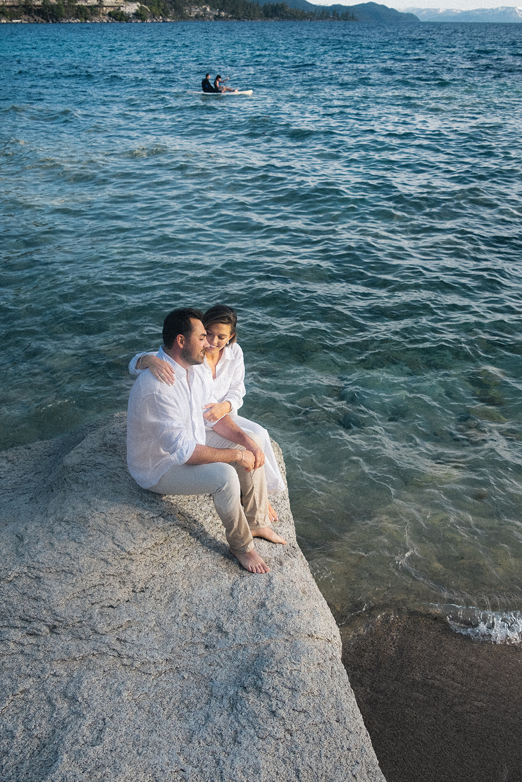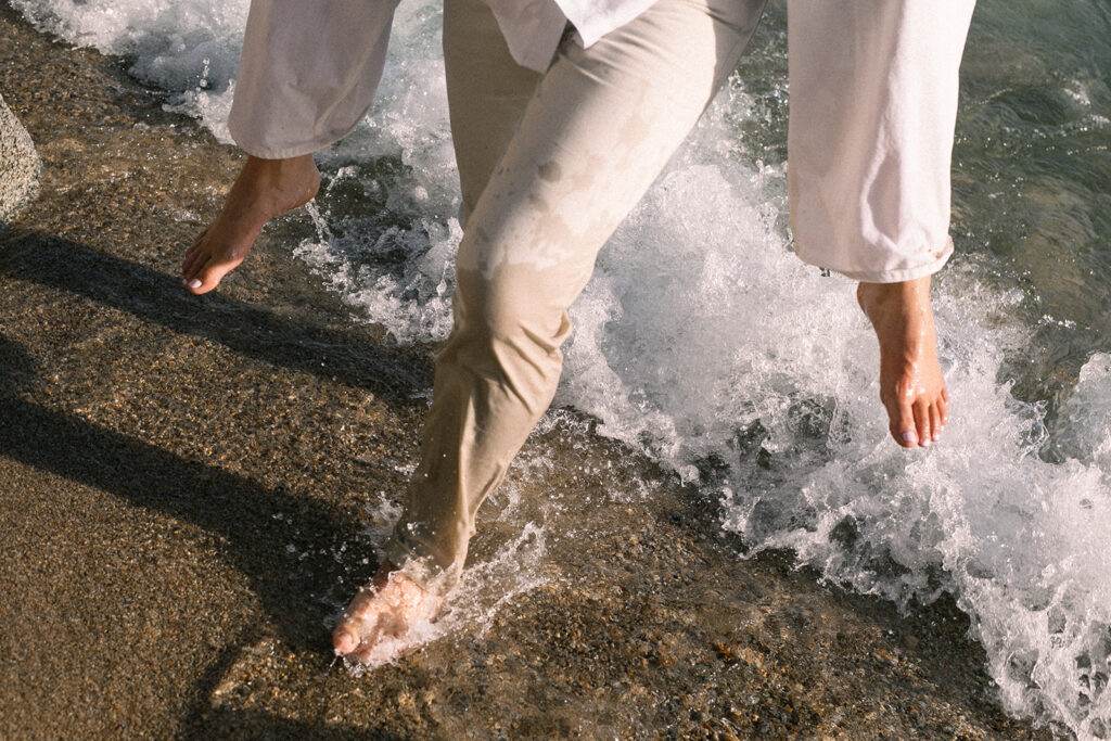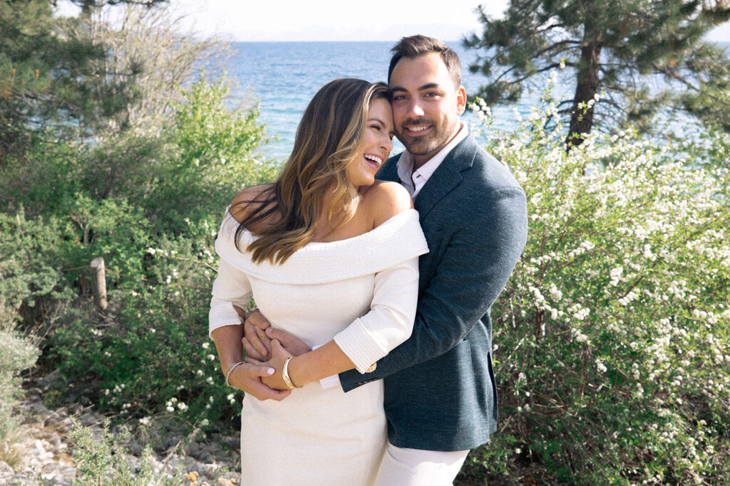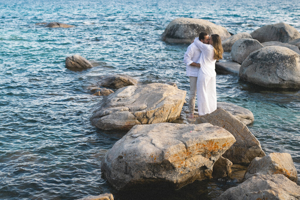 Lake Tahoe attracts the family-centered couples who want their wedding to feel like an upscale family vacation – one of the many reasons why I love living and working here! – Having recently moved to the area, I’ve been making it a priority to discover all of the beaches along Tahoe, and so far, Hidden Beach has easily become one of my favorites! Nestled along the crystal-clear shoreline near Incline Village. When A+D reached out to start planning their engagement session in Tahoe, I knew immediately that this beach would fit their vibe, and boy did it deliver!